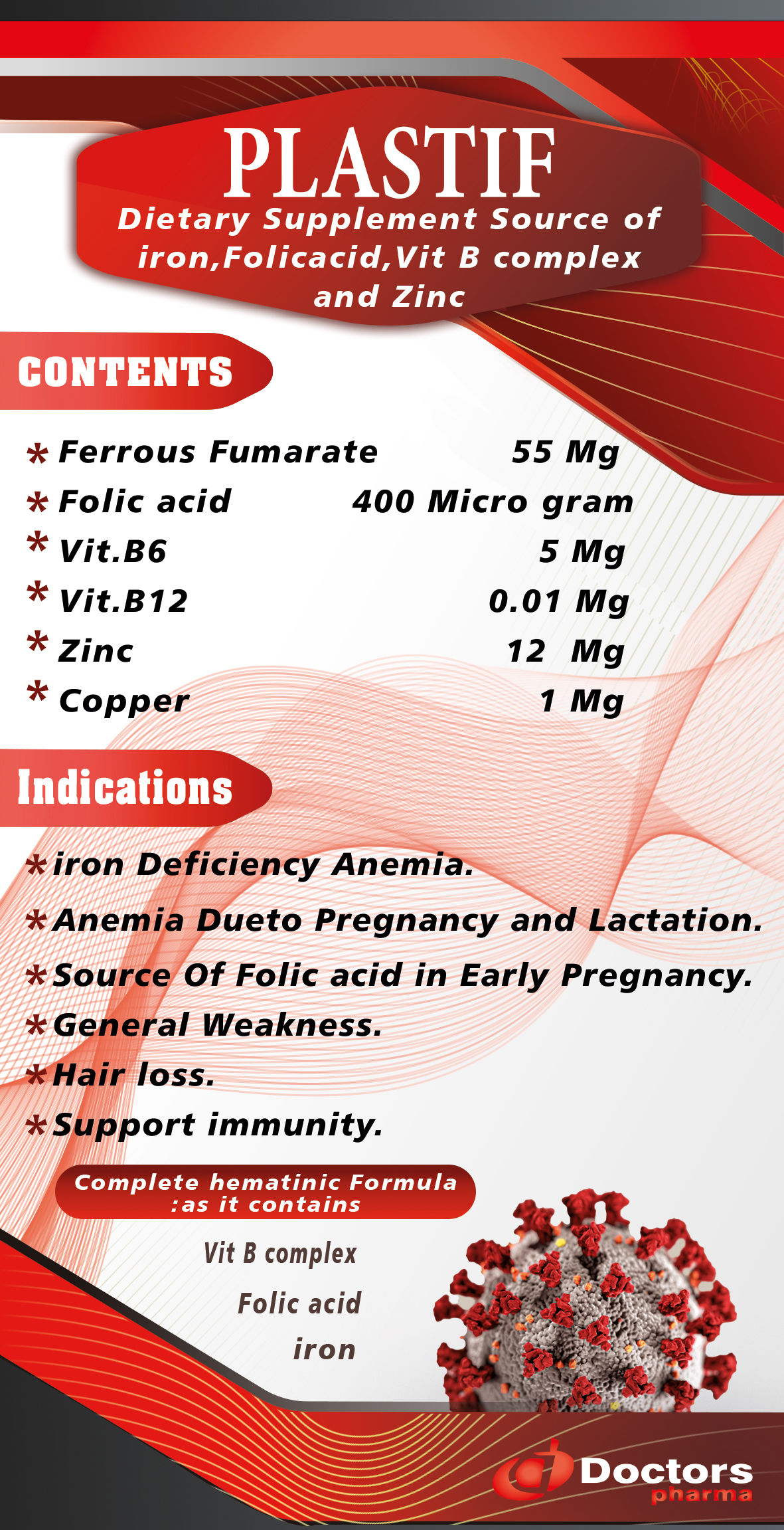 مكمل غذائي مصدر للحديد و الفوليك اسيد و فيتامين ب٦،ب١٢ مع الزنك و الكابر