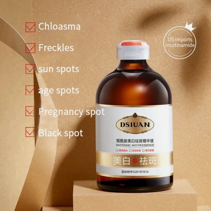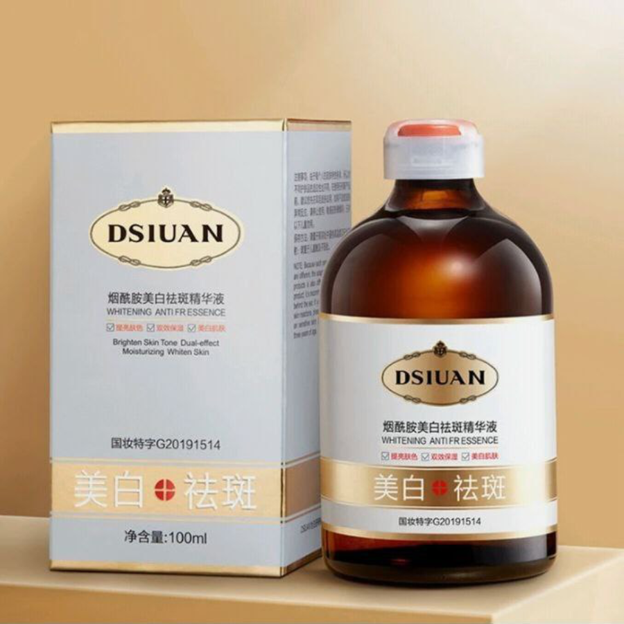 🟣 "DSIUAN WHITENING🔝 ANTIFRESSENCE"، وهو✨✨ مخصص لتفتيح لون البشرة. يحتوي على مكونات ترطب البشرة وتساعد في تفتيحها. يأتي في عبوة سعة 100 مل ويتميز بتقنية ثنائية الإلكترون.💡💡