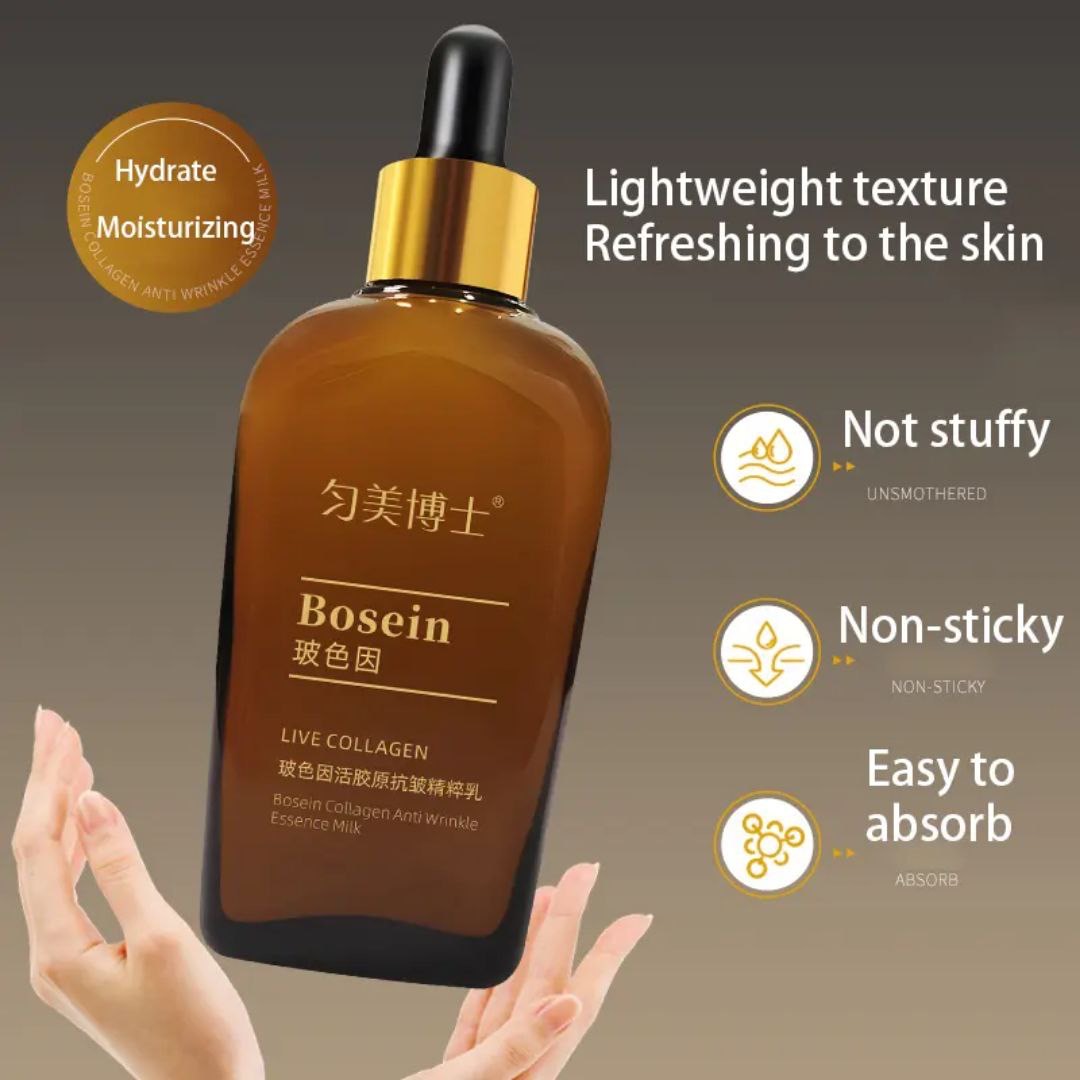 * تركيبة متطورة: يحتوي على مكونين قويين مضادين للشيخوخة: البوسين الذي يحفز إنتاج الكولاجين والإيلاستين، والكولاجين الحي الذي يعزز مرونة البشرة ويملأ التجاعيد.