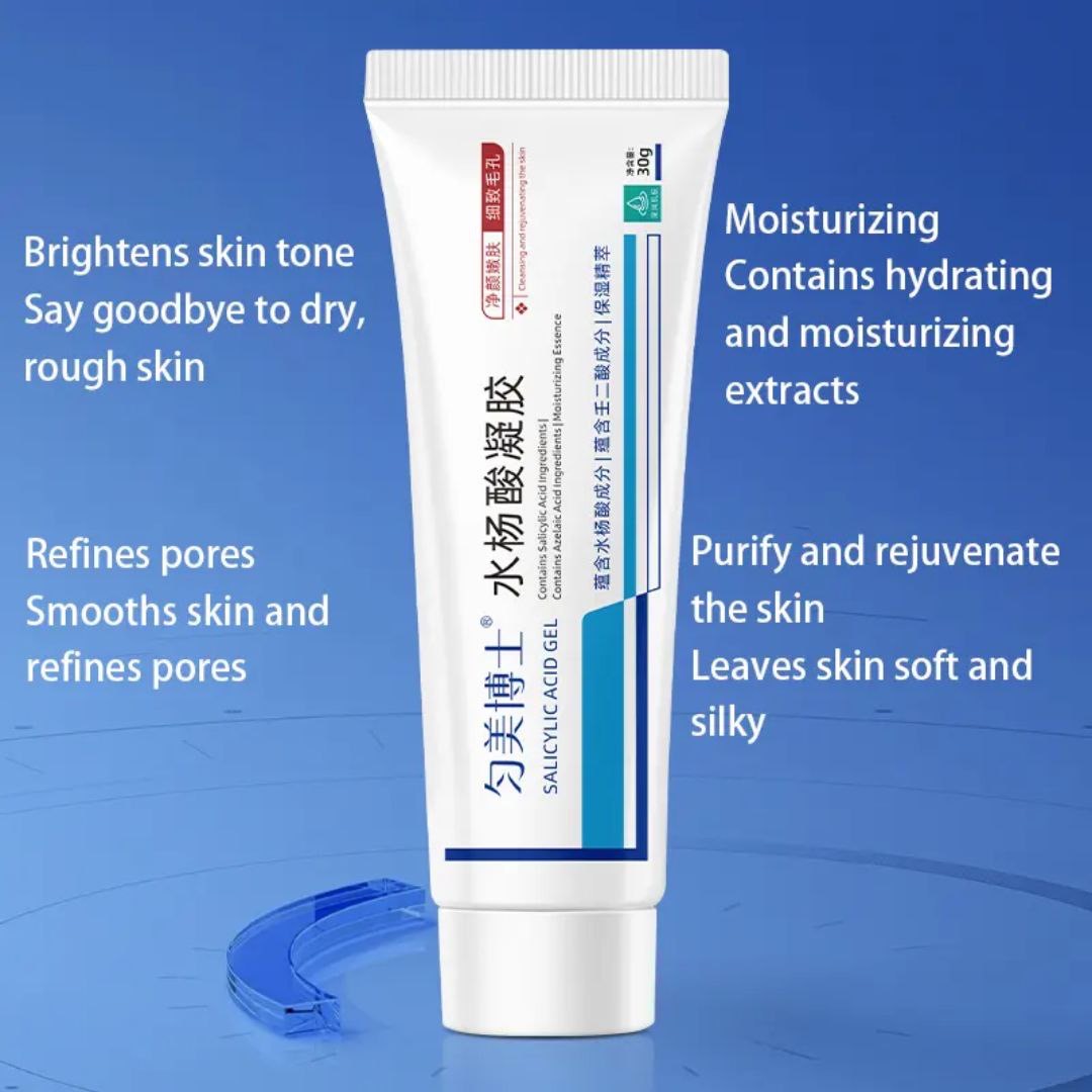 🆕هذا المنتج عبارة عن جل حمض الساليسيليك، مصمم لتنظيف البشرة وتجديدها. إليك بعض خصائصه وفوائده الرئيسية: