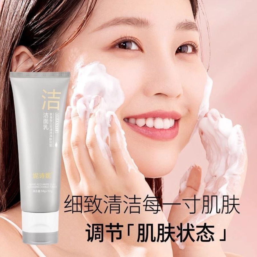 اللون الأبيض لتنظيف لطيف بالأحماض الأمينية يحافظ على توازن البشرة،