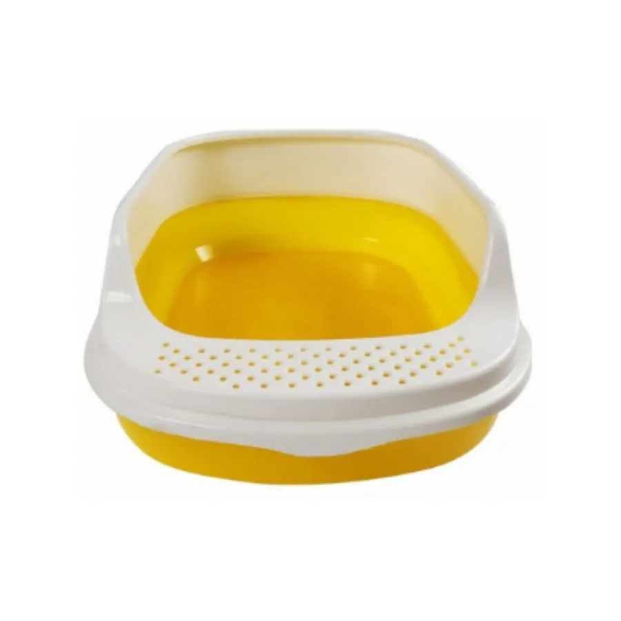 petizen - White & Yellow Cat Litter Tray With Rim (40*30*9cm)