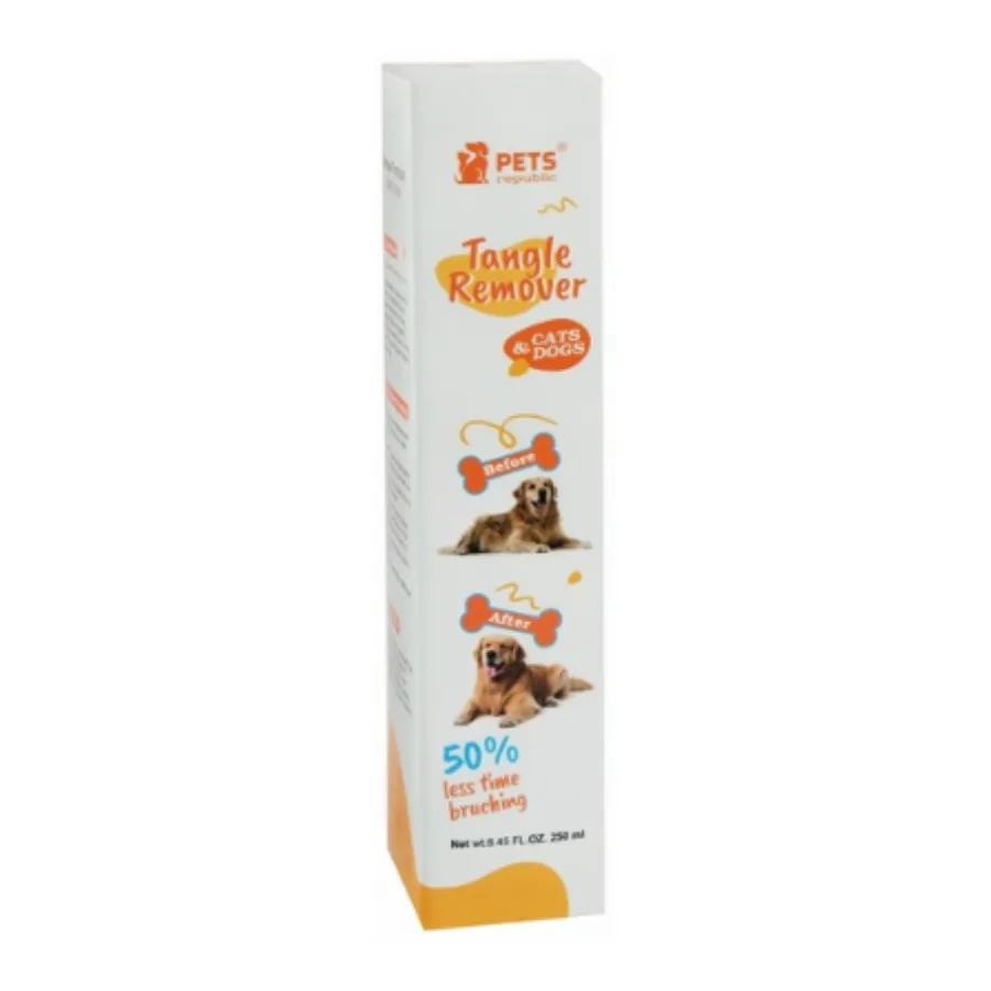 تم تصميم بخاخ Pets Republic Tangle Remover Spray لفك تشابكات شعر الحيوانات الأليفة، مما يوفر الوقت والجهد أثناء تمشيط الفراء. هذا المنتج مناسب للكلاب والقطط من جميع الأعمار، ويأتي بتركيبة جاهزة للاستخدام لا تتطلب الشطف.
